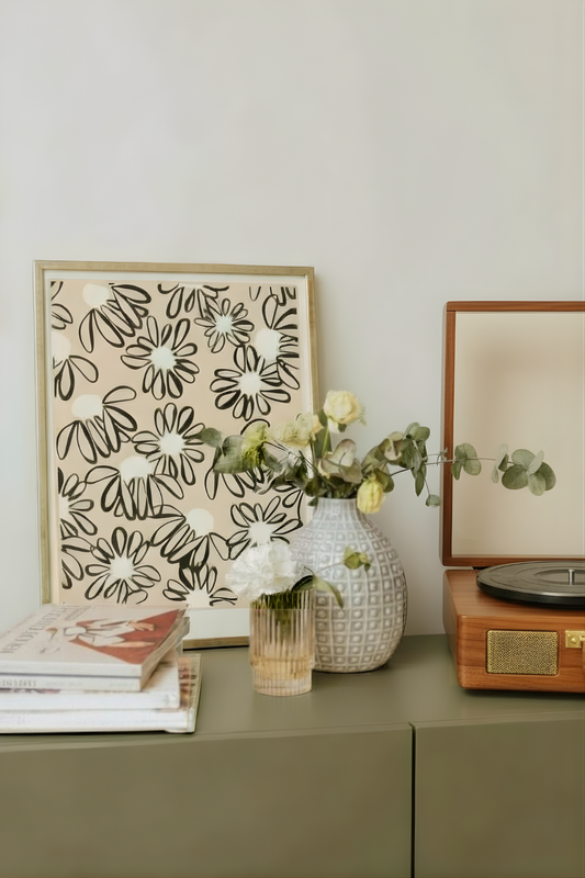- Grand tableau ou poster mural : idéal au-dessus du canapé, il devient la pièce maîtresse du salon.