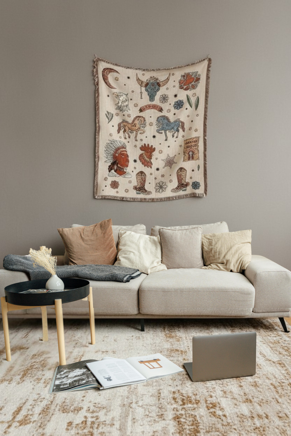 Transformez vos murs en un clin d’œil grâce à cette tenture murale à suspendre. Moderne et originale, elle puise son inspiration dans l’univers Indiens et cow-boys pour donner du style et de la personnalité à votre intérieur.